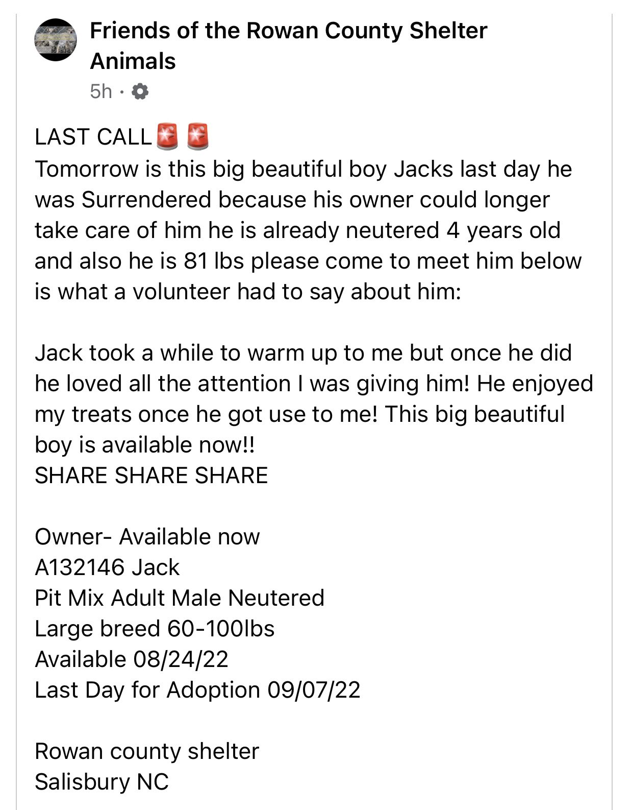 Wiggles Larue On Twitter Extremely Urgent Tomorrow Is Jack S Last Day Please Adopt Him He S At Rowancountyshelteranimals In Salisbury North Carolina Save Him Https T Co Lq3mxgzzzx Twitter